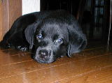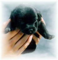 | 2001年6月30日(土) | メグの父親は、とても大きな黒ラブで、犬舎から出されるととてもうれしそうに私たちの方へ走ってきて私の顔をなめようと柵越しに飛びついて来たのです。 その顔の大きいのに驚きました。元気で明るいとても立派な黒ラブでした。母親は、授乳のためかとても細くて、おとなしい性格の黒ラブで、 9匹の子犬たちを自分の体でやさしく囲ってなめていました。 |