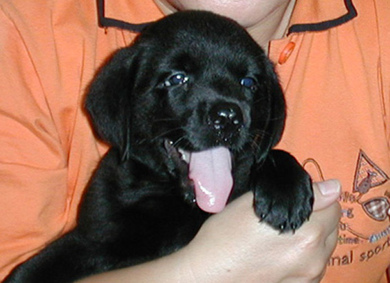 メグが埼玉から神奈川へ車で我が家へ到着した時には、「クンクン」泣きながら車のケージの中に小さくなっていました。 私はすぐ抱き上げようとしましたが、余りにも小さくか弱そうだったので、怖くて抱っこもできず、メグを連れてきてくれた訓練士の方がヒョイと抱き上げて我が家の中まで連れてきてくれました。 親兄弟から離れて、初めての環境に慣れなくて、2~3日間、メグはサークルの隅の方で小さく丸まっていました。 でも持ち前のラブらしい明るい仔ですぐに我が家のヒロインとなりました。 |